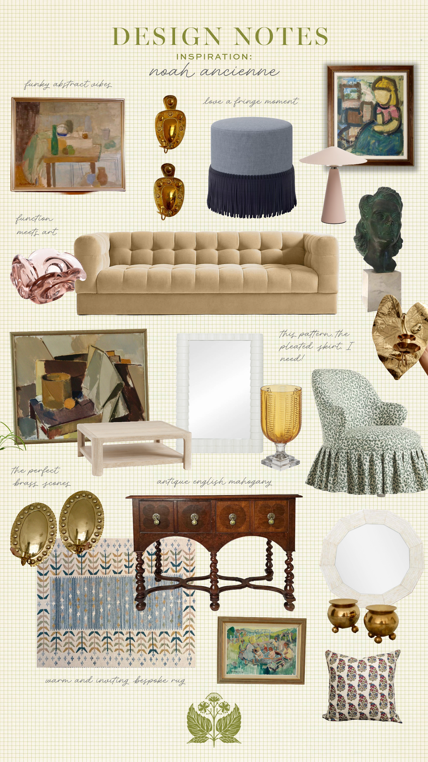 As a designer, there’s nothing more magical than stumbling upon a new source for one-of-a-kind home goods. Case in point... Noah Ancienne. I came across this site and was locked into endless scrolling of their beautiful vintage and antique items. Each piece of art is not only stunning, but well-priced, and their (mostly brass) lighting and styling accents are the perfect additions to any space. Family-owned, which is lovely, and based in a small English town, equally as lovely, I am thrilled to begin incorporating these items into my home and others. I know you will be too! I am in love with the colors found in this incredible still-life and felt inspired to mix it in with some other recent favorite online finds...